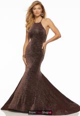 Fascinate all in sight at your senior prom in this exquisite Morileee dress 43137. Made in a flattering stretch glitter fabric, this ravishing dress showcases a high halter neckline and slim style that defines your figure perfectly for an hourglass silhouette. Dance all night long in this shimmering dress that features an alluring open back and elegant sweep train.