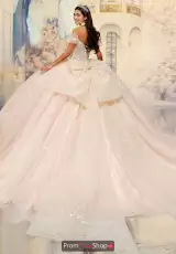 Make a lasting impression in the breathtaking Princesa Quinceanera gown, style PR30202. This enchanting design showcases dreamy, removable three quarter balloon sleeves and detachable off the shoulder straps, offering customizable comfort and style. The intricately adorned bodice shimmers with delicate beading and elegant applique, which flows seamlessly into the voluminous tulle skirt, complete with a show stopping detachable bow. Hidden pockets add a touch of convenance without sacrificing the stylish look. The gown comes with coordinating earrings and a graceful capelet for added coverage and elegance. A lace up back with a modesty panel ensures a secure, flattering silhouette, perfectly balancing glamor and grace.