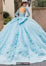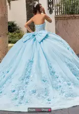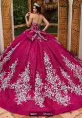 Hear gasps when you enter the room wearing this enchanting Quinceanera dress by Rachel Allan Quince, style RQ1168. This silhouette features an elegant strapless scoop neckline and a lovely corset. The glitter tulle skirt flows from the small of your waist, cascading to charming train. Embellished in the most graceful beadwork and applique, ensuring you stand out. The one of a kind bow is the perfect finishing touch to this breathtaking gown. Sleeves/Necklace sold separately as QS1168.
