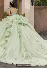 Be the talk of the night with this jaw dropping ball gown by Rachel Allan Quince, style RQ3163. Featuring a strapless v neckline with detachable applique cap sleeves. The bodice is embellished with the combination of applique and intricate beadwork that cascade into the long glitter tulle train. To complete the look is a detachable floral bow that will make every exit just as grand as your entrance.
